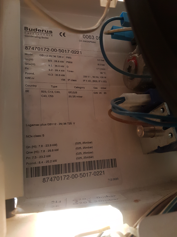 - Naam van de fabrikant (vb.: Buderus, Vaillant, Bulex, Remeha, Viessmann, Junkers,...)